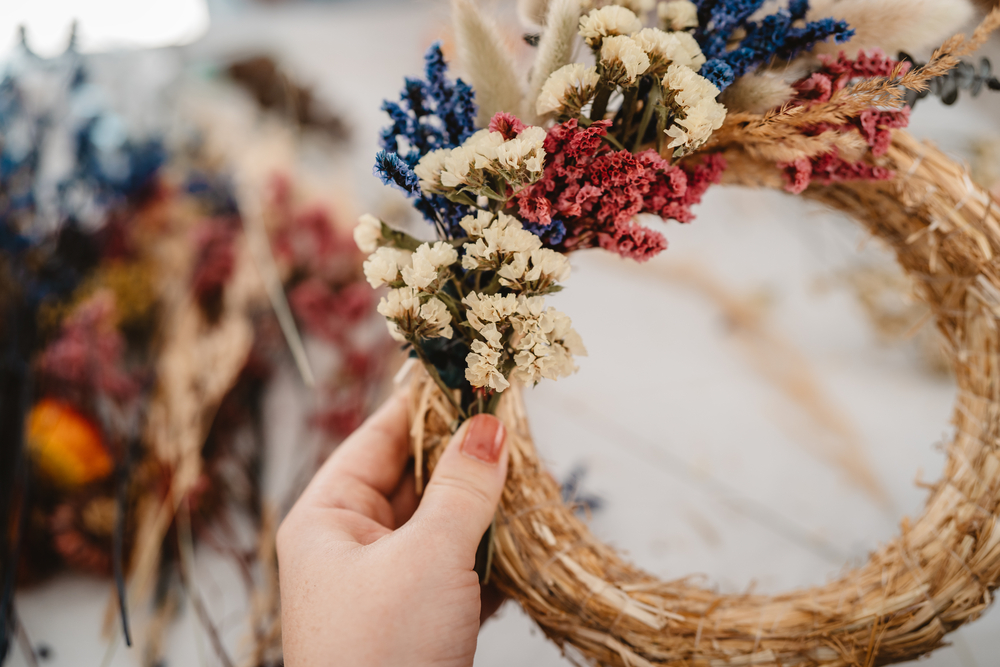 Usušiť si kvety nie je taký problém, krásne vyzerá napríklad levanduľahortenzia, nevädza, vlčie maky, slamienky ale okrasné trávy. Kvety vždy sušte zviazané a zavesené kvetmi dole, potom už ich len stačí dať do sklenenej alebo keramickej vázy a jesenná dekorácie na stôl je hotová.